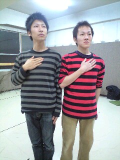ジャスティンこと藤原君(写真の赤い方)、自分の弟役なのですが、前回は私服までボーダーでお揃いでした。