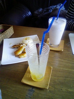 いなべはゆず蜜ソーダとハニーキャラメルバナナ、ゆうきちゃんはバナナラッシーをそれぞれ注文!