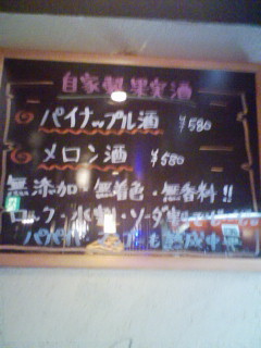 今お店で飲めるのはパイナップル酒とメロン酒の2種類です。すっきりとした甘みと飲み心地で、ソーダ割りでもそのままでも美味しかったです。